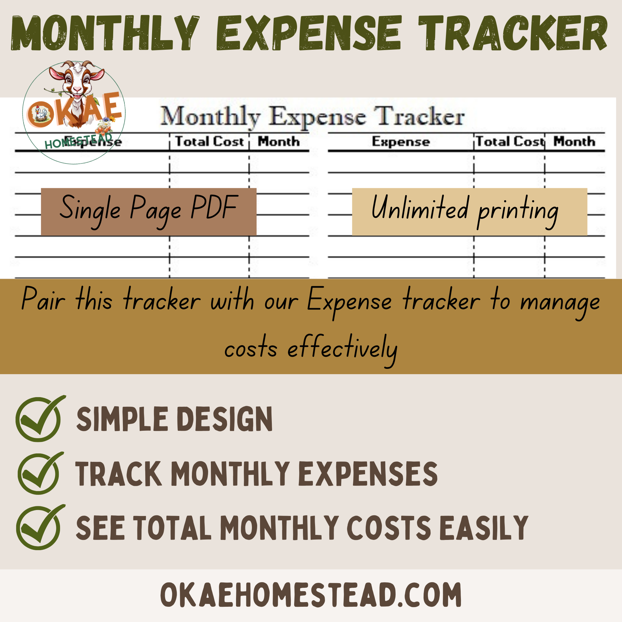 This tracker and the Expense Tracker go hand in hand for maintaining daily and monthly costs.